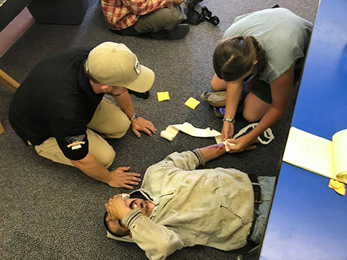 The class consists of lecture, practical exercises and scenario train where students will put their skills into mock practice on fellow classmates and instructors.